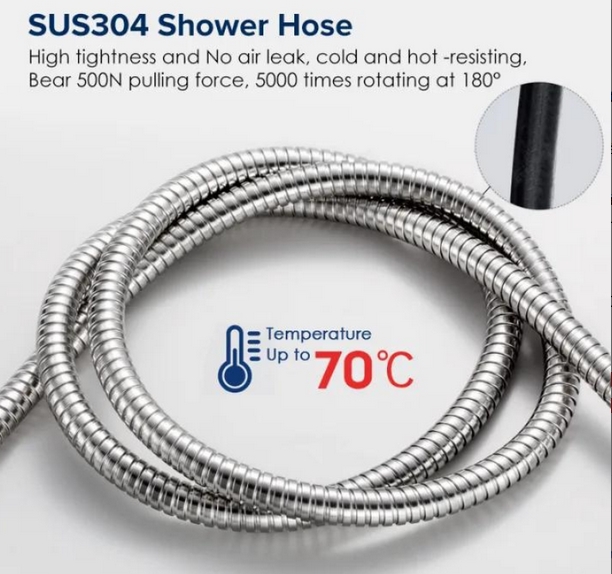Dây xịt được làm bằng inox 304, dây dài 1m2, chống xoắn, chịu áp suất cao, bền bỉ cùng năm tháng