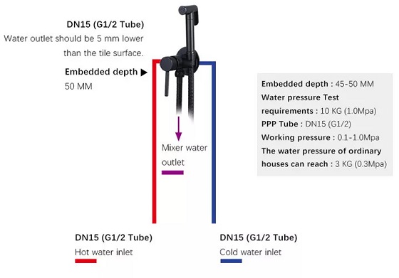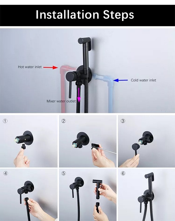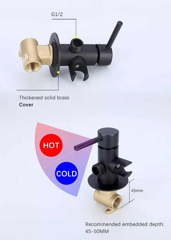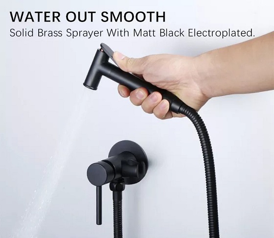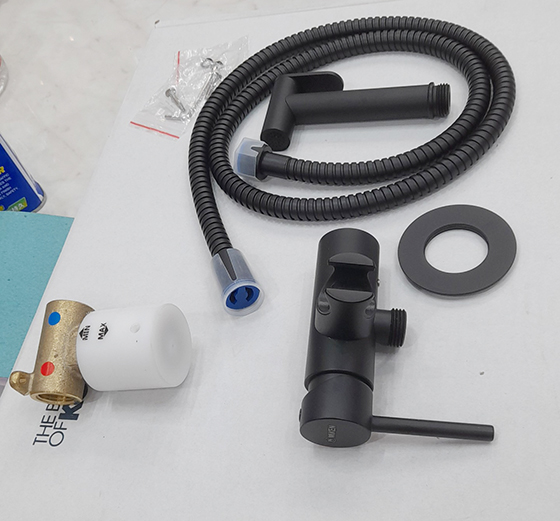 Vòi xịt vệ sinh nóng lạnh màu đen âm tường