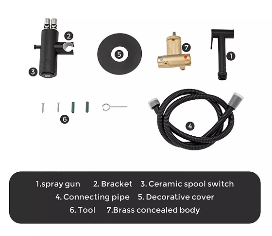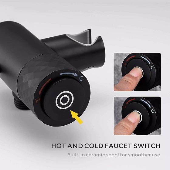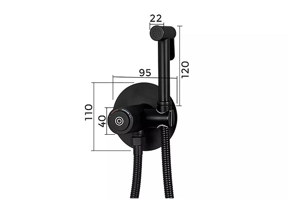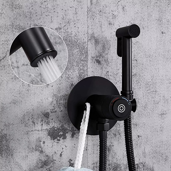 Vòi xịt vệ sinh nóng lạnh màu đen âm tường
