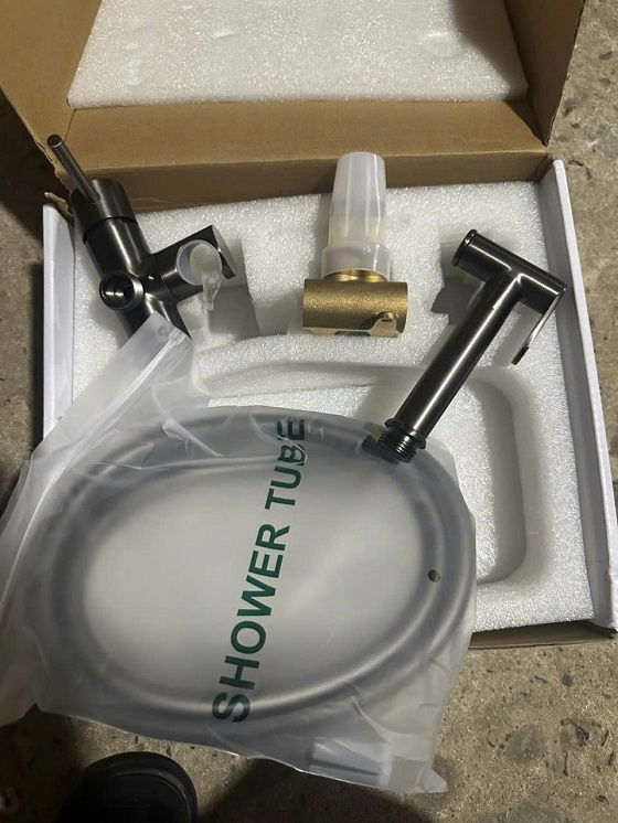 Vòi xịt vệ sinh nóng lạnh màu ghi âm tường