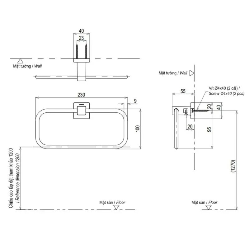 Thông Số Kỹ Thuật Chi Tiết Của Vòng Treo Khăn Toto YTT408V: